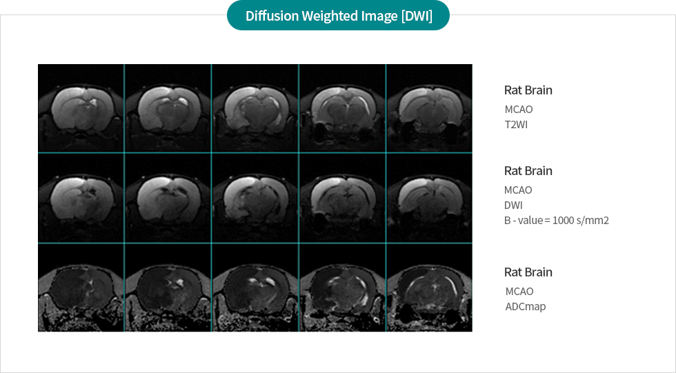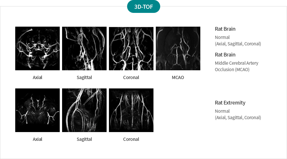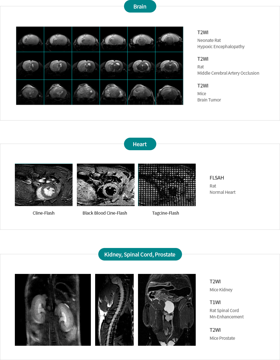 - 내부장기에 이식한 암조직의 경우 MRI의 적합한 RF coil을 선택하여 기본적인 T1w, T2w기법을 통하여 해부학적인 영상에서 암조직을 확인할 수 있습니다.