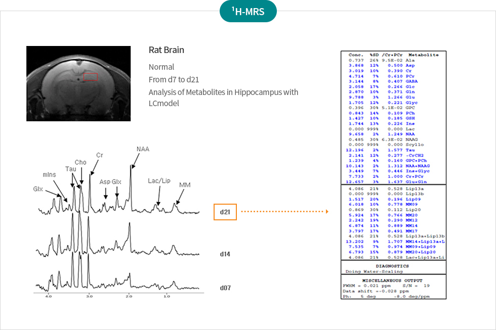 - 뇌부위의 암병변의 경우 DTI/DWI를 통하여 조직의 세포밀집도(Cellularity/Diffusivity)를 MR spectroscopy를 통하여 조직의 대사물질변화 등을 알아낼 수 있습니다.
