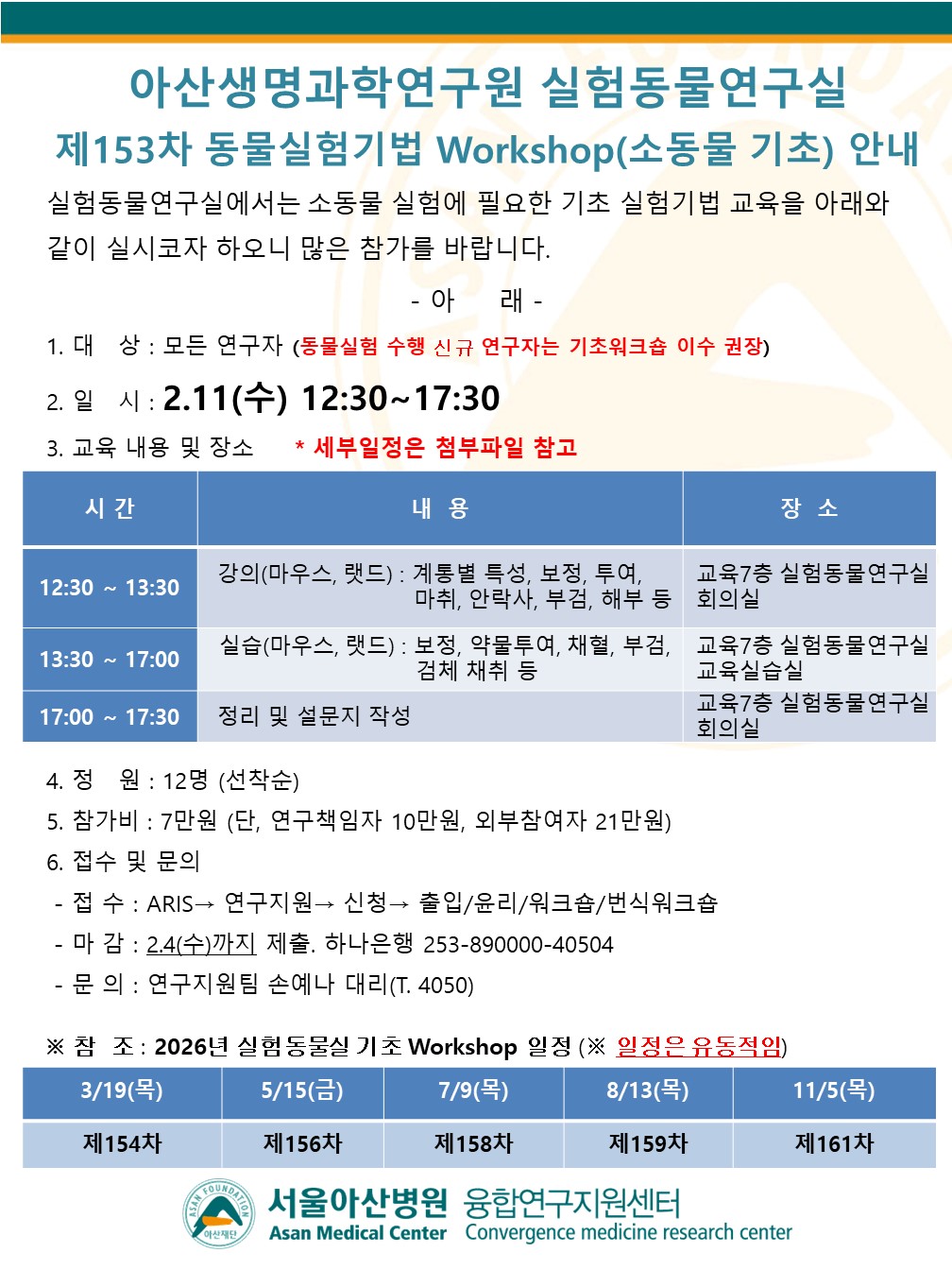 제153차 소동물 기초 Workshop 참가 안내(2.11일)