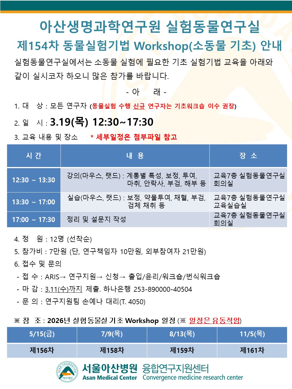 제154차 소동물 기초 Workshop 참가 안내(3.19일)